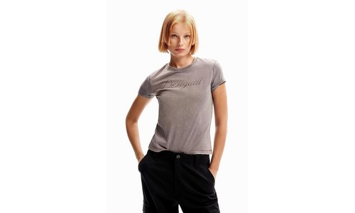 Desigual 여성용 슬림 라인스톤 티셔츠, 블랙.