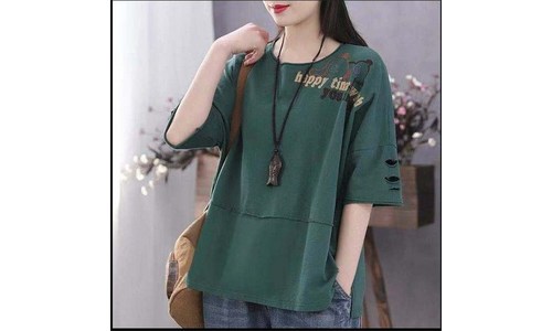 besteffie 반팔티셔츠 여성 여름 라운드넥 루즈핏 레터링 중년여성 반팔티셔츠 엄마옷 빅사이즈 상의 C88