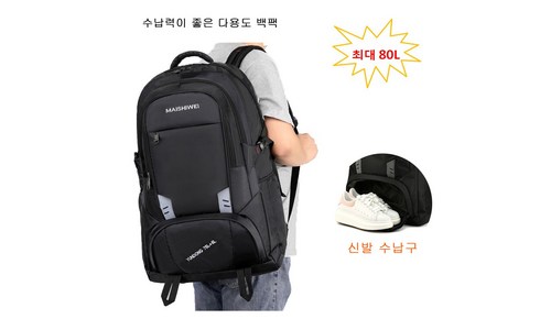 대용량 백팩 빅사이즈 대형 60L 80L 방수 여행 출장 가방 등산 배낭 방수재질 5중 수납 신발수납