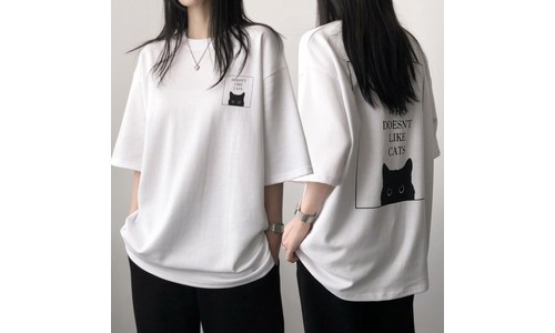 레이디스룸 국산 특양면 ~2XL 오버핏 고양이 프린팅 빅사이즈 박스 반팔 티셔츠