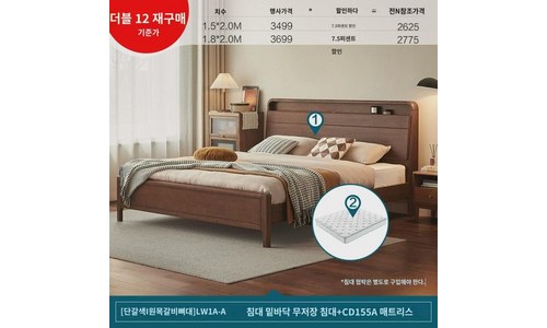 임씨홈 풀원목 침대 더블침대 1.5m 가구 골조침대 침대 민박침대 임씨목업 LW1A