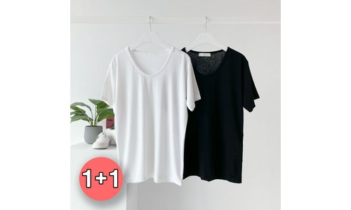 잇츠심플 부드러운 찰랑 레이온 무지 유넥 반팔티 1+1